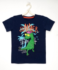VT #112 Fabric Construction: Single Jersey Fabric Composition: 100% Cotton Fabric GSM: 170 gsm Colour: Navy Treatment: Rubber,Puff Print with Applique embroidery