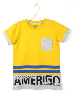 VT # 114 Fabric Construction: Single Jersey Fabric Composition: 100% Cotton Fabric GSM: 160 gsm Colour: Yellow+Grey melange Treatment: Rubber Print.