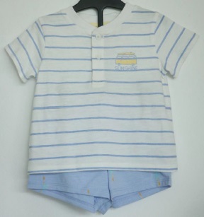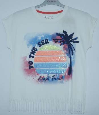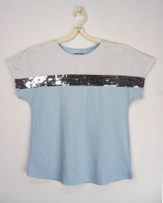 VT # 170 Fabric Construction: Single Jersey Fabric Composition: 100% Cotton Fabric GSM: 160 gsm Colour: White+Pastle Blue Treatment: Sequince Embroidery